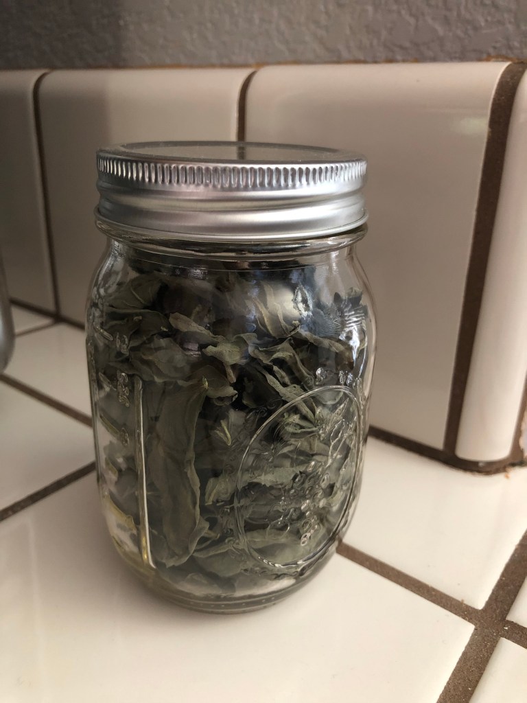 I love to dry herbs. This is especially useful when you can’t eat at the speed your plants are producing.