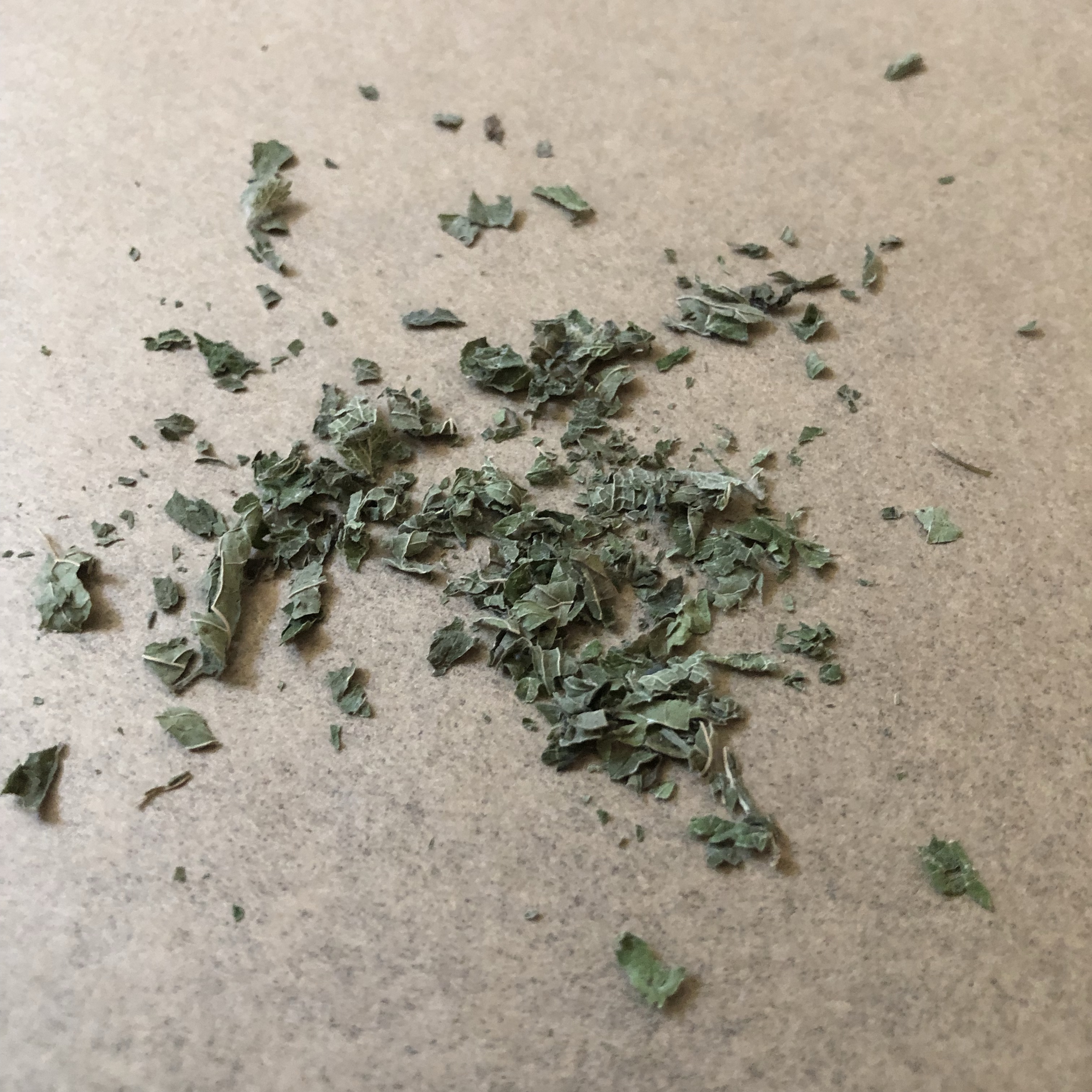 I like to dry spearmint, peppermint, oregano, lemon balm, basil, and more. I dry herbs at 110 degrees Fahrenheit for 12 hours at a time—12 hours then check because the smaller-leaved herbs like oregano will likely be done and you can take them out. Larger herbs like spearmint and basil will take another 12 hours.