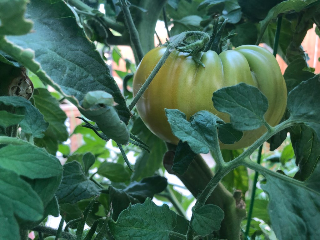 I grew this plant from a start, not from seed. Earlier this year I tried to start Indigo Apple tomatoes from seed and it didn’t go well. I got two starts out of 20-ish seeds and the two small plants didn’t survive. So far I can do well with a tomato plant once it has been started for me. Next year I will try again with seeds.