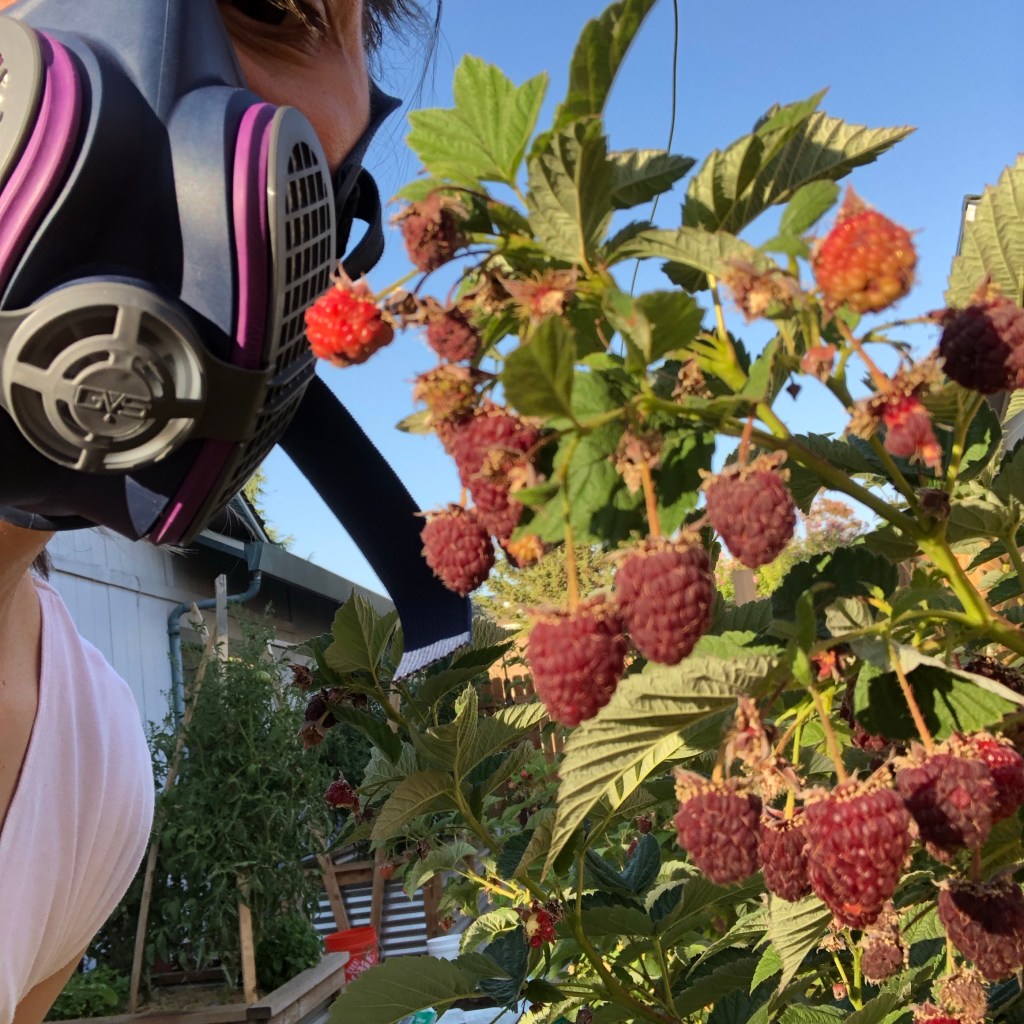Despite our Wifi-enabled watering system, there are some fruits and vegetables that need picking. And a few potted starts I need to tend. For these tasks, I wear a respirator—specifically a GVS Elipse Respirator. If you want to garden in smoky air, this will be a life saver.